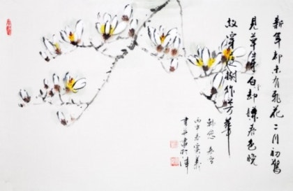이 시는 원화10년(815) 한유의 작품으로 《昌黎先集(창려선생집)》에 실려있다. 홀로 앉아 정원을 바라보니 흰 눈이 날리고 있다. 이월이라 아직 꽃은 피지 않았으나 추위에 풀들은 싹이 돋기 시작하기 놀랍기만 하다. 꽃 피기를 기다리나 봄이 늦어 꽃이 피지 않으니 꽃이 피기를 기다리는 심정으로 흰 눈이 내리는 것을 바라본다.
