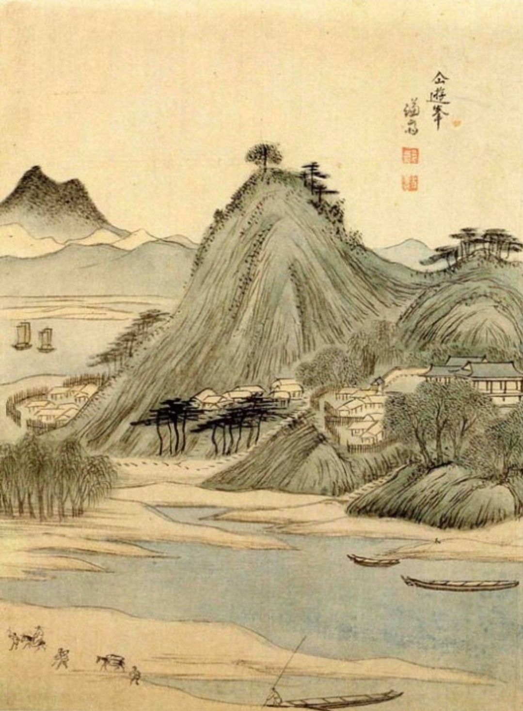 지금 서울 영등포구 양화동 양화선착장 일대의 260년전 모습이다. 이 곳 에는 선유봉(仙遊峯)이라는 매혹적인 산이 있었다. 신선이 놀던 산이라 는 뜻이다. 관악산과 청계산의 서쪽 물과 광교산 수리산 소래산의 북쪽 물을 몰고 온 안양천이 산자락을 휘 감으며 한강에 합류하는 지점에 붓끝 처럼 솟아난 산봉우리였다. 선유봉은 그러나 1965년 양화대교가 이 곳을 관통하면서 역사 속으로 사라지고 만 다. 이 산자락 강변에는 서울로 가는 큰 나루와 안양천을 건너 양천으로 가는 작은 나루가 있었는데 모두 양화(楊花)나루라 불렀다. 이 곳의 지명이 당시에도 양천현 남면 양화리 였기 때문이다.