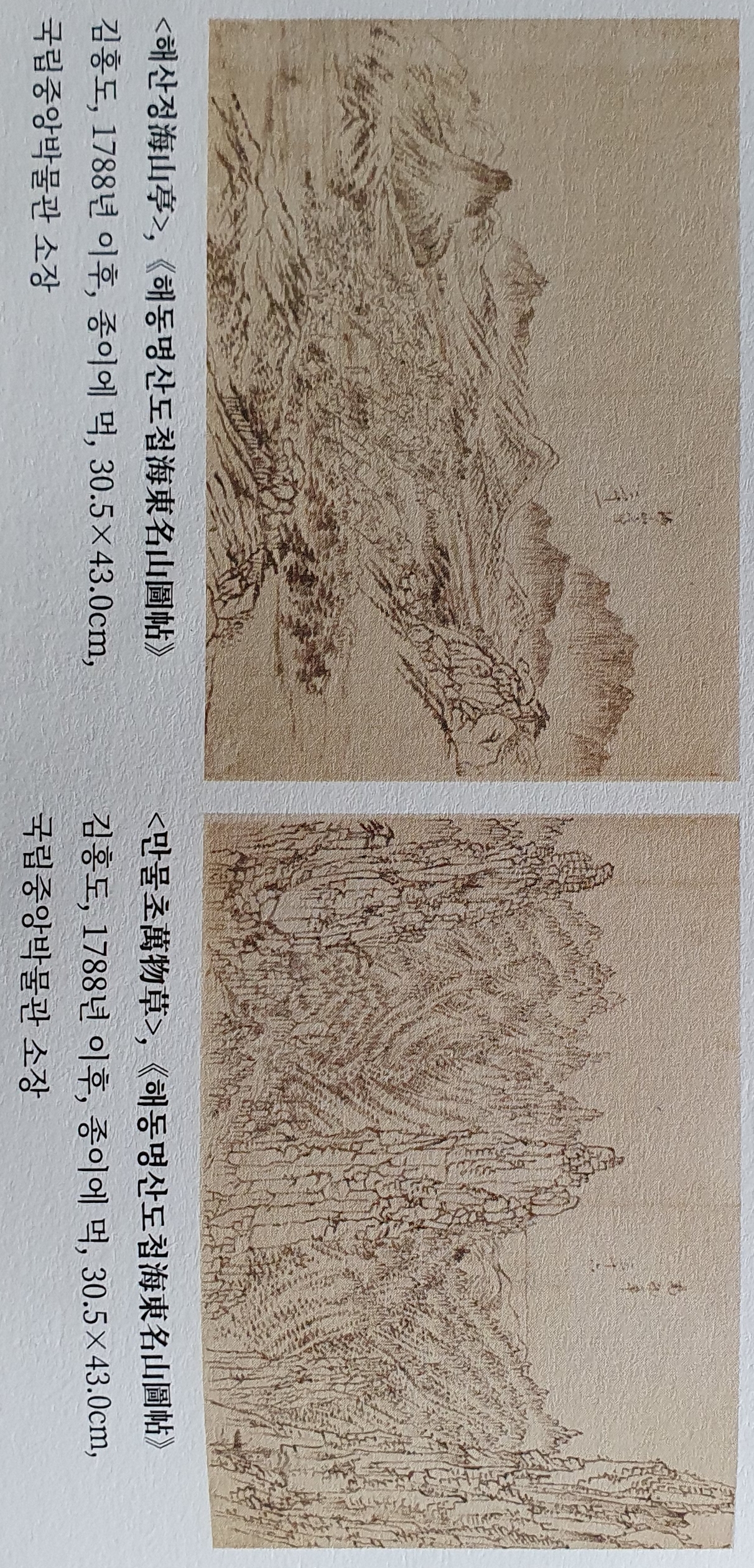 경상도 안동 인근의 안기찰방을 마치고 돌아 온지 2년 후인 1788년 44세의 김홍도는 정조의 어명으로 금강산과 관동팔경을 그림으로 그려오게 되었다. 이때 김홍도는 친한 선배 화원 김응환(1742-1789)을 함께 데려가는데, 9~10월에 걸쳐 금강산과 관동팔경 일대를 유랑하며 그 경치를 100여폭의 초본으로 그려온다. 한양으로 돌아온 후에 초본을 바탕으로 10미터가 넘는 비단두루마리 채색화를 그려 정조와 신하들이 감상하며 시를 짓고는 하였다고 기록되어 있다. 그러나 아쉽게도 이 작품 은 그 후 화재로 소실되었다고 한다. 그러나 당시 그려졌다고 하는 초본 과 많은 모사본들이 남아있어 당시 화풍을 알 수 있게 해준다. 김홍도는 금강산 봉명사경을 계기로 정선이 이룩한 진경산수화풍을 대욱 사실적, 서정적으로 발전시켰다.