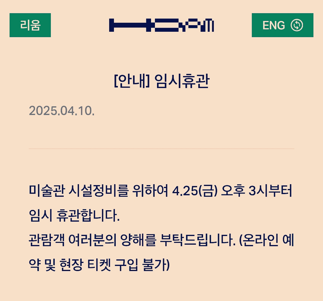 호암아트홀 웹사이트에 위와 같이 임시휴관 안내가 올라와 있습니다.