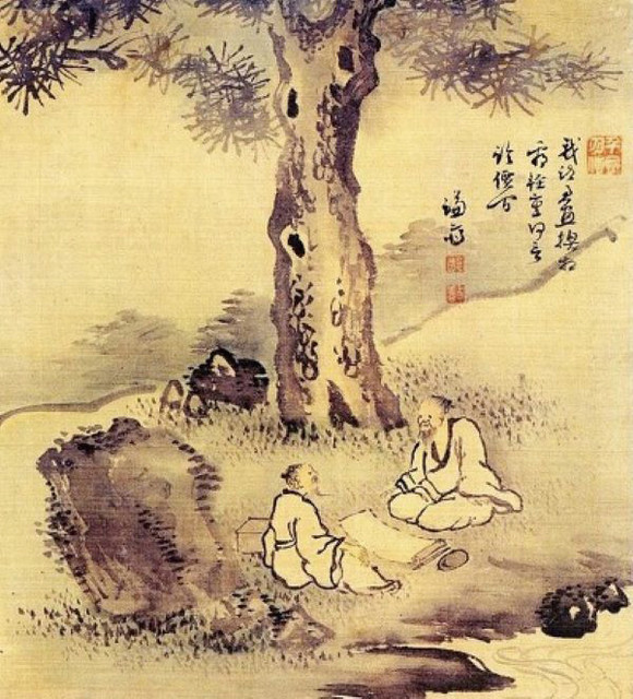 이런 배경을 가지고 있는 시화상간도를 보면 큰 소나무 아래로 신선 같은 두 노인이 마주 앉아 있다. 66세의 겸재와 71세의 사천이다.