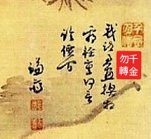 畵題 옆 頭印 ‘천금물전(千金勿傳)’ 이라는 도장은 “천금을 준다 해도 남에게 넘기지 말라”는 다짐 도장이다.