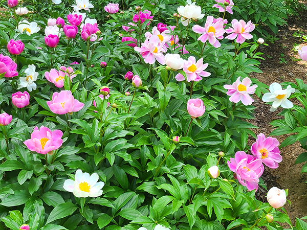 보통은 초여름, 이르면 5월 경에 중심 줄기 끝에서 하나의 꽃이 피어나는데 꽃의 크기가 상당히 크고 향기가 엄청 진하다. 그만큼 화려한 꽃을 피우지만 일주일 정도 피었다가 꽃이 지기 때문에, 그 점이 아쉬운 점이다. 꽃은 원래 홑꽃이지만 품종개량에 의해 현재는 겹꽃도 많이 있다. 꽃잎의 색은 분홍색, 흰색, 줄무늬가 있는 흰색 등 색상이 다채롭다.