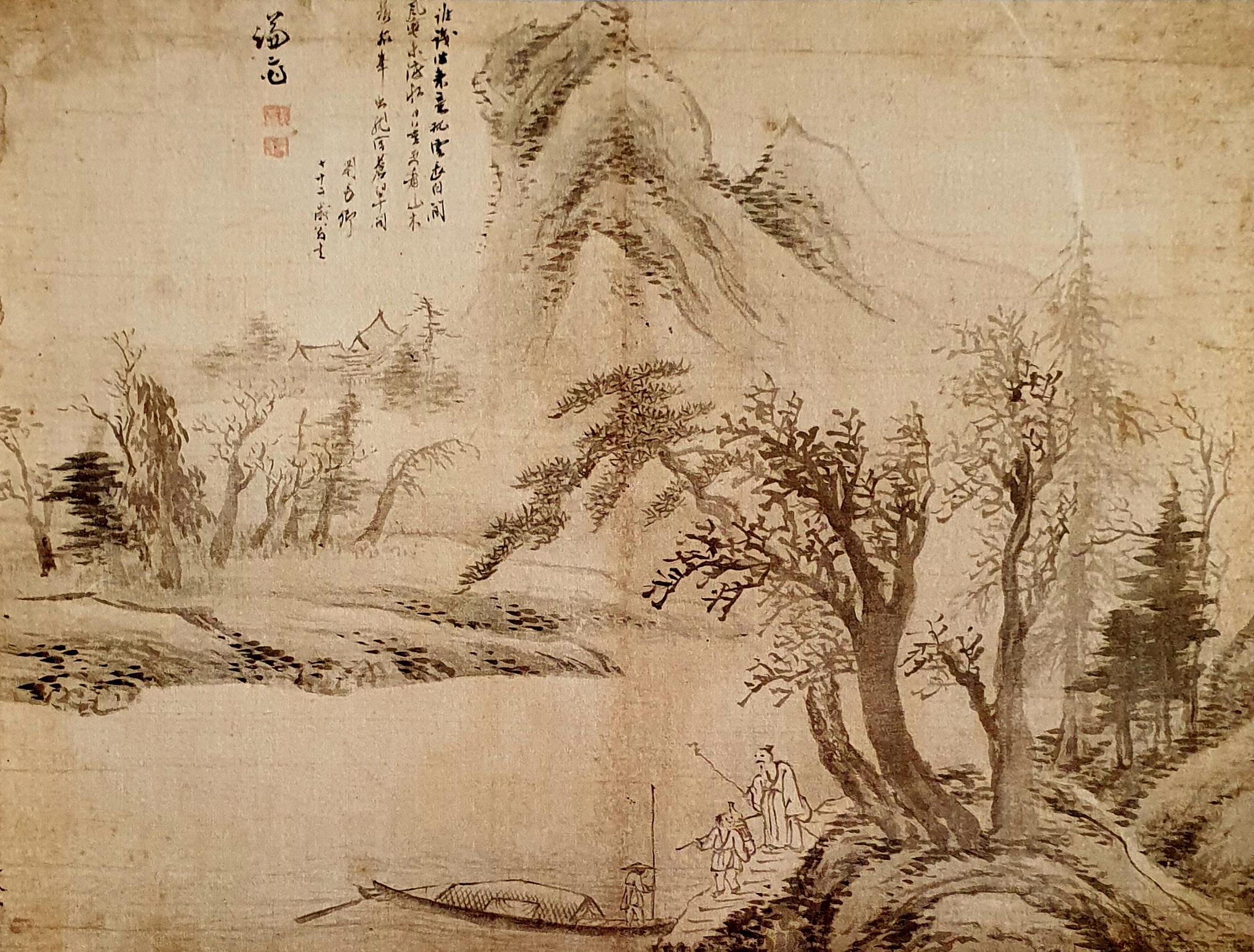 산수 배경 아래 배를 타려는 은자(隱者)를 그린 작품이다. 상단에 제발과 낙관이 있는데, 제발은 당나라 시인 유장경(劉長卿)의 시이며, 마지막에 “72세 늙은이가 쓰다(七十二歲翁書)"라는 내용이 있어 정선이 72세 (1745년)에 그린 시의도(詩意圖)로 짐작된다. 화면 가운데 큰 주산(主山)이 있다. 화면의 오른쪽 아래에 묘사된 전경에는 언덕 위에 큰 나무와 인물이 배치되어 있다. 주산은 정선 특유의 미점(米點)으로 표현되었으며, 나머지 배경은 간략하게 표현되어 주제가 강조되어 있다. 특히 이 작품에서 주목되는 것은 정선이 다양한 방법으로 나무를 그렸다는 점이다. 이파리까지 세밀하게 표현한 소나무를 비롯하여 먹을 진하게 쓴 나무, 점을 옆으로 길게 찍어 잎을 표현한 나무 등 다양한 수지법(樹枝法)이 나타나 있다. 정선 만년의 원숙한 필법이 돋보이는 작품으로 주목된다.