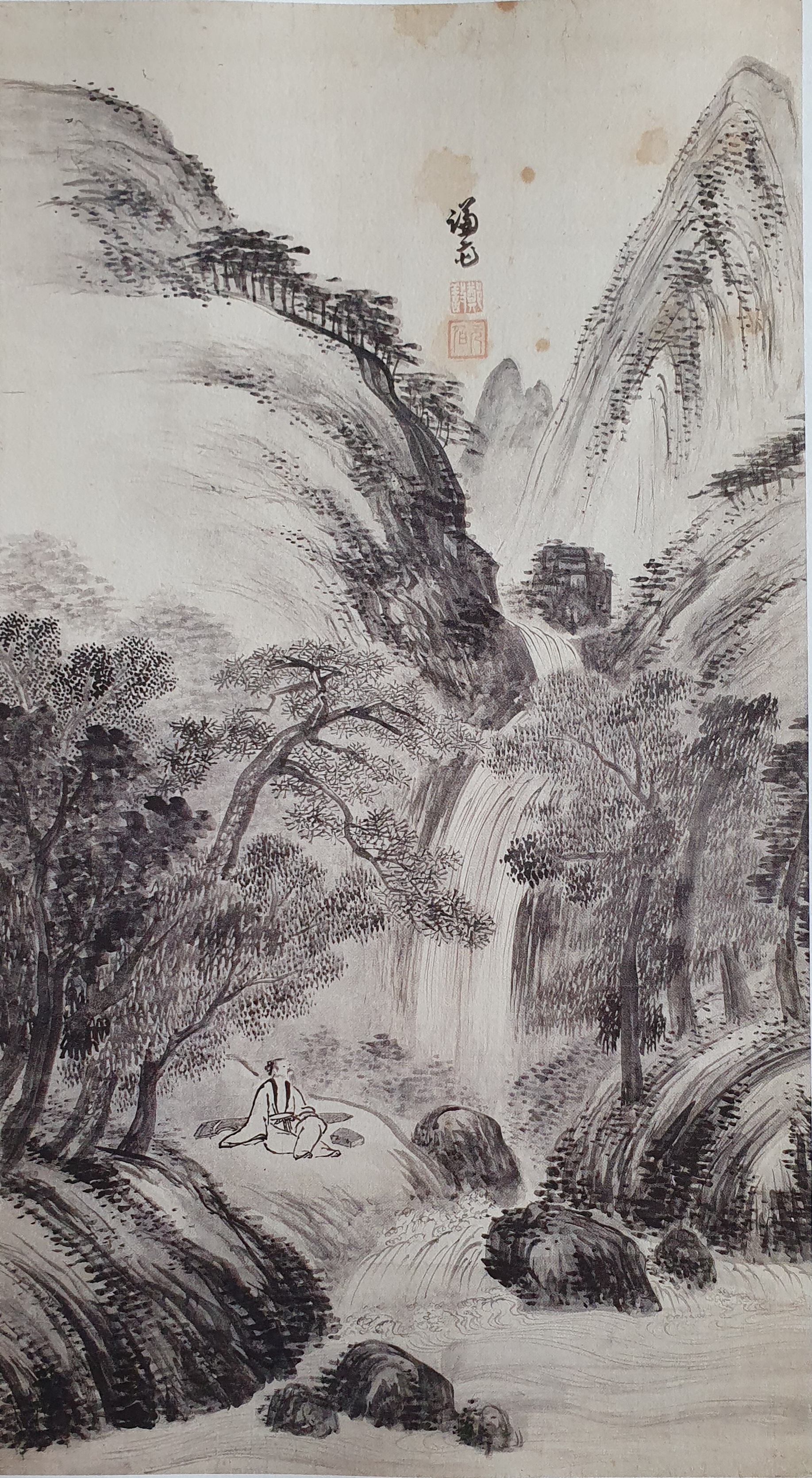 이 그림은 거문고 하나, 책 한 질 들고 폭포를 찾아 납량(納涼)의 지락(至樂)을 즐기는 고사를 소재로 그린 작품이다.