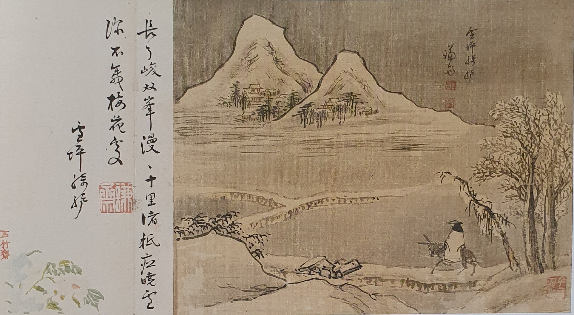 <설평기려>는 늦은 겨울 혹시라도 일찍 핀 매화가 있을까 하여 눈길에 나귀를 타고 매화를 찾아 나서는 중국 당나라 맹호연(孟浩然, 689-740)의 <파교심매도(灞橋尋梅圖)>와 유사하다. 그래서 사천 이병연은 이 그림을 보고 "길구나! 높은 두 봉우리, 아득한 십리 벌판이로다. 다만 거기 새벽 눈 깊을 뿐, 매화 핀 곳 알지 못해라.(長了脸雙峰,漫漫十里活,低應曉雪深,不孟梅花處)"라는 시를 짓고 겸재가 썼다. 맹호연의 고사를 양천현과 우장산(雨裝山) 두 봉우리를 배경으로 삼은 듯 진경산수화풍으로 해석했다. 나무마다 설화(雪花)가 만발하고, 산야(山野)는 온통 눈뿐인데 동터 오르는 새벽 하늘은 아직 어둠기가 남아 있다. 아무도 다니지 많은 새벽 눈길을 또박또박 나귀 발자국 찍으며 갈 길은 나귀에게 맡긴 채 설경만을 완상하고 가는 나들이 길의 운치가 대단하다.