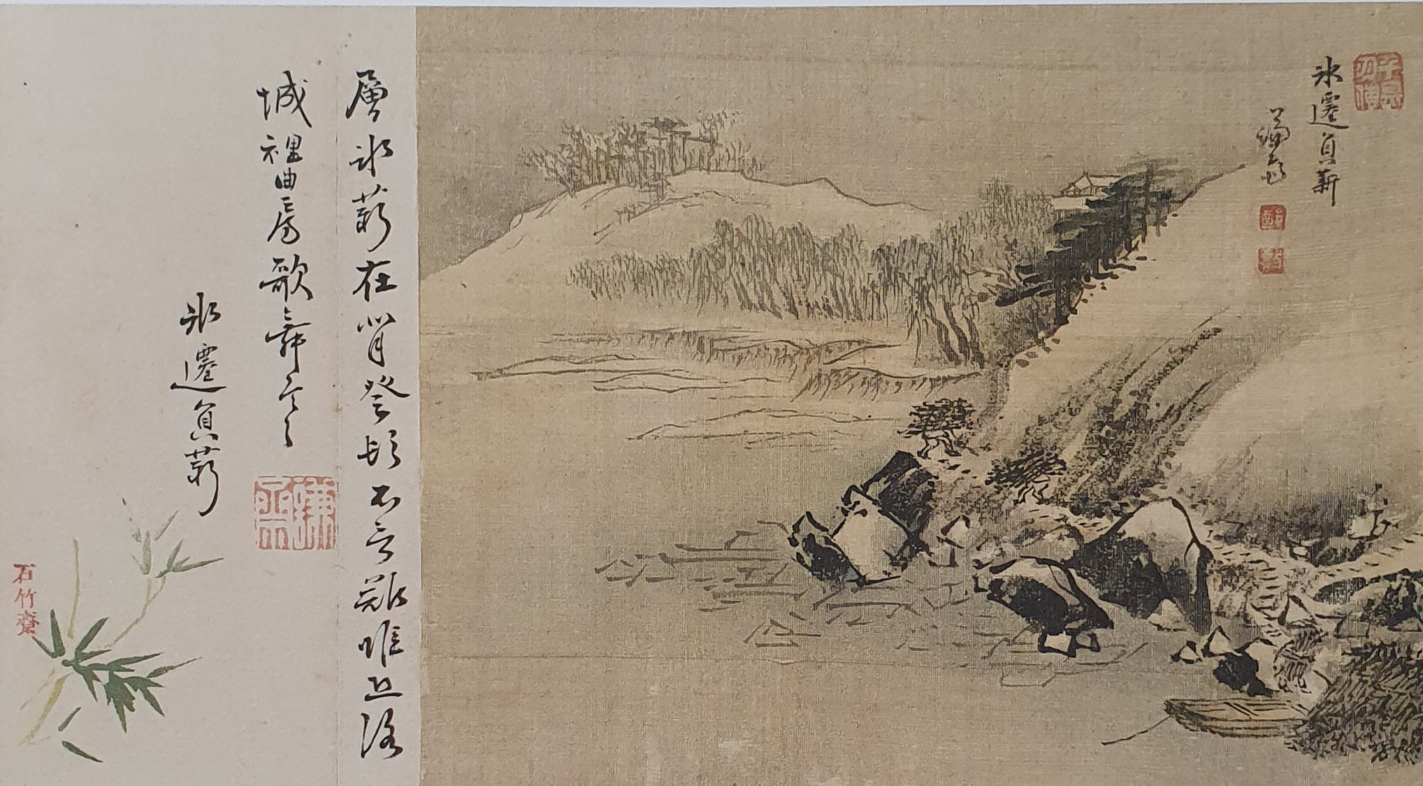 <척재제시>는 '척재'라는 선비가 한강에서 잡힌 웅어(=葦魚)를 선물 받고 그에 보답하는 시를 짓는 모습을 그린 작품이다.