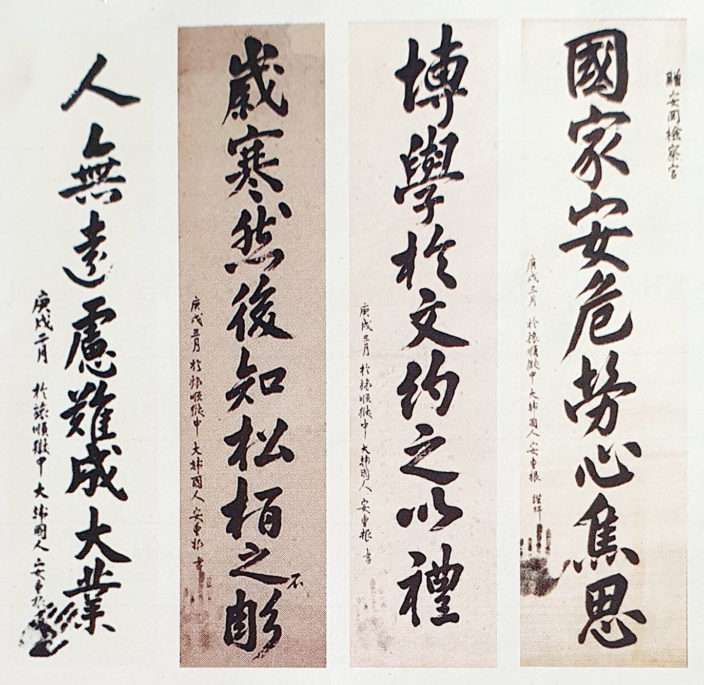 '궂은 옷, 궂은 밥을 부끄러워하는 자는 더불어 의논할 수 없다'라 는 뜻이다. 가난하고 천한것을 결코 부끄러워하지 않는 안의사의 인생관이 반영된 말이다.