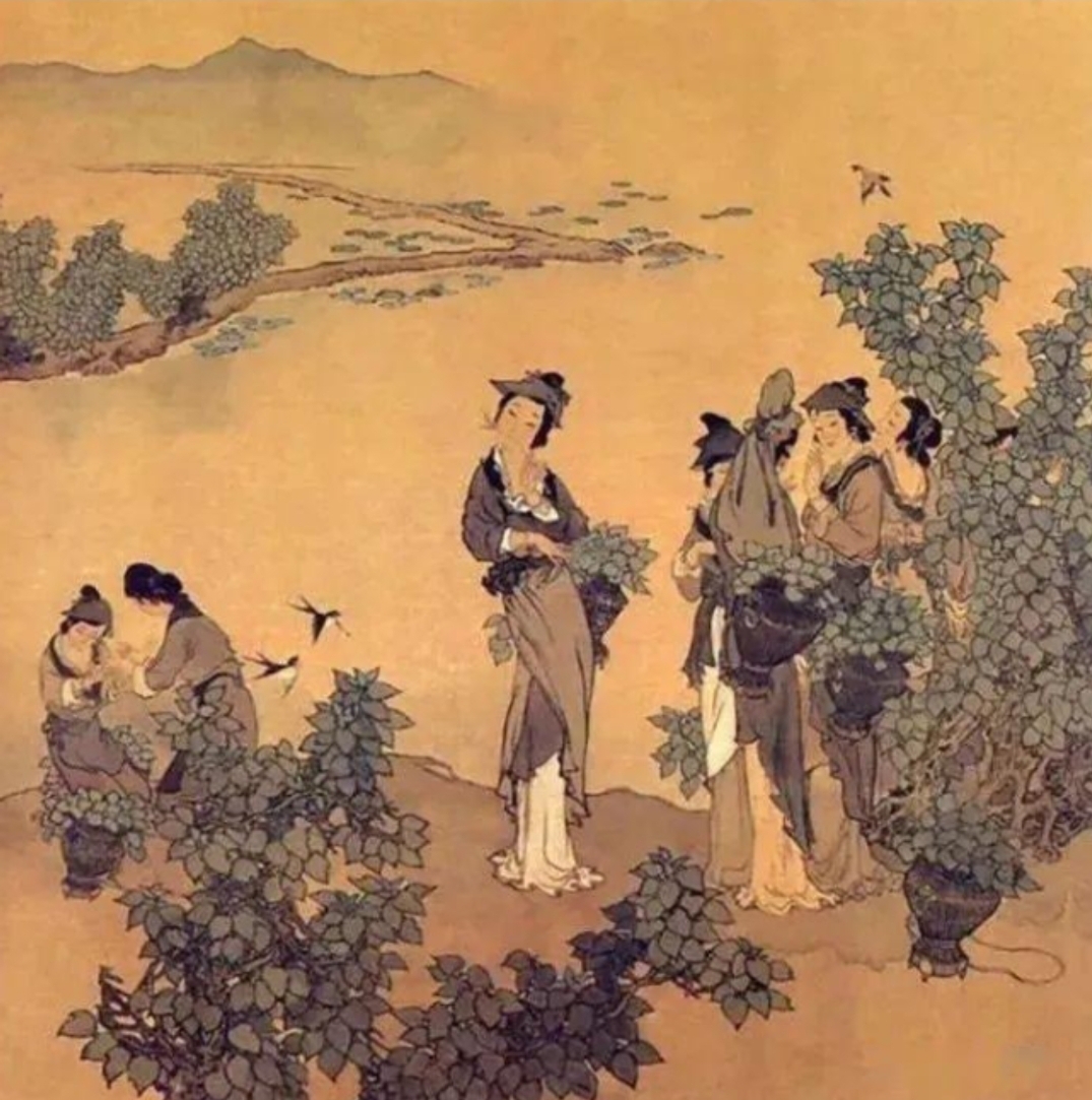 조그마한 밭 사이에 뽕 따는 이 한가하네 그대와 함께 돌아가리라 조그마한 밭머리에 뽕 따는 이 느긋하네 그대와 함께 떠나가리라