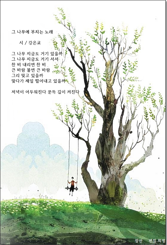 하늘은, 지붕 너머로 아주 푸르고 고요하다 나무는, 지붕 너머로 가지를 흔들고 있다종(鐘)은 저 하늘에 조용히 울리고 있다 새는 저 나무에서 한탄의 노래를 부르고 있다신(神)이여, 저것이 삶이다 소박하고 고요한 이 평화로운 소요(騷擾)는 도시에서 오는 것어떻게 된 것인가 아! 너는 여기서 줄곧 울고 있으니말해 보아라, 어떻게 된 것인가 너의 청춘(靑春)이?*하늘은, 지붕 너머로베를렌(Paul Verlaine, 1844-18 96, 프랑스, 서정 시인)