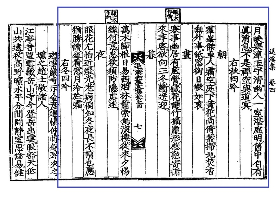 山居四時各四吟 共十六絶中 冬吟-산거사시각사음 공십륙절증 등음-李滉 이황冬朝吟동조음겨울날 아침羣峯傑卓入霜空 군봉걸탁입상공뭇 산봉우리들 가을 하늘 속에 우뚝 솟았고庭下黃花尙倚叢 정하황화상의총뜰아래 누런 국화는 아직 몇 떨기 남았는데掃地焚香無外事 소지분향무외사바깥이 무사하도록 땅을 쓸고 향불을 피우니紙窓銜日皦如衷 지창함일교여충종이창이 햇빛 머금어 밝기가 속마음 같구나冬晝吟 동주음겨울날 낮寒事幽居有底營 한사유거유저영쓸쓸하게 은거하며 살며 추울지라도藏花護竹攝羸形 장화호죽섭리형꽃 심고 대숲 돌보며 몸을 보전하네慇懃寄謝來尋客 은근기사내심객찾아오는 손님 은근히 사양해 보내니欲向三冬斷送迎 욕향삼동단송영삼동이 되면 맞이하고 보냄도 끊으리라※幽居(유거) : 속세를 떠나 깊숙하고 고요한 곳에 묻혀 외따로 삶.冬暮吟 동모음겨울..
