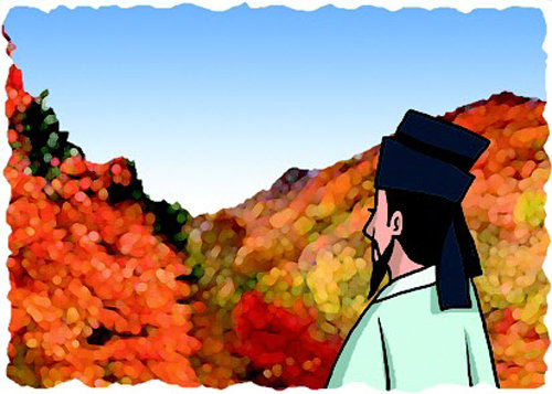 和杜綠事題紅葉-白居易 寒山十月旦, 霜葉一時新. 似燒非因火, 如花不待春. 連行排絳帳, 亂落剪紅巾. 解駐籃輿看, 風前唯兩人. 차가운 산 시월의 아침, 서리 맞은 나뭇잎 일시에 바뀌었다. 타는 듯해도 불이 난 건 아니요, 꽃 핀 듯하지만 봄이 도래한 건 아니라네. 가지런히 이어져 짙붉은 장막을 펼친 듯, 마구 흩날려 붉은 수건을 자른 듯. 단풍 구경하려고 가마 멈추고, 바람 앞에 선 이는 우리 둘뿐이려니.*‘두목의 단풍 시에 화답하다’(화두녹사제홍협·和杜綠事題紅葉) 백거이(白居易·772∼846) 카테고리 없음 2023.10.13
