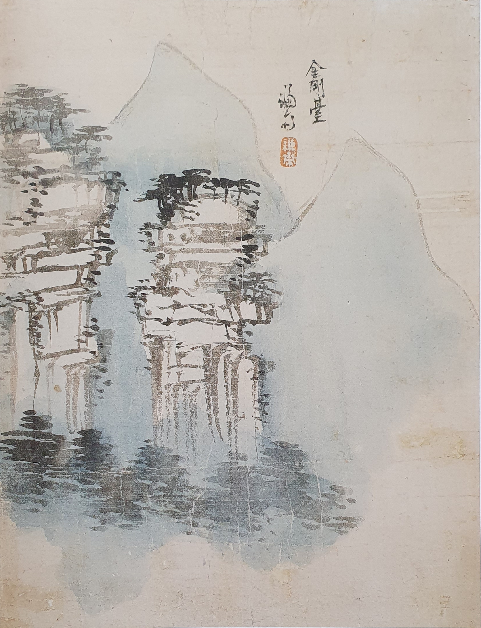 ' 금강대', '겸재'라는 글씨와 도장은 80대 노대가의 초탈함을 보여준다. 거의 같은 기법으로 그려진 <정양사>와 함께 한 쌍을 이룬다.