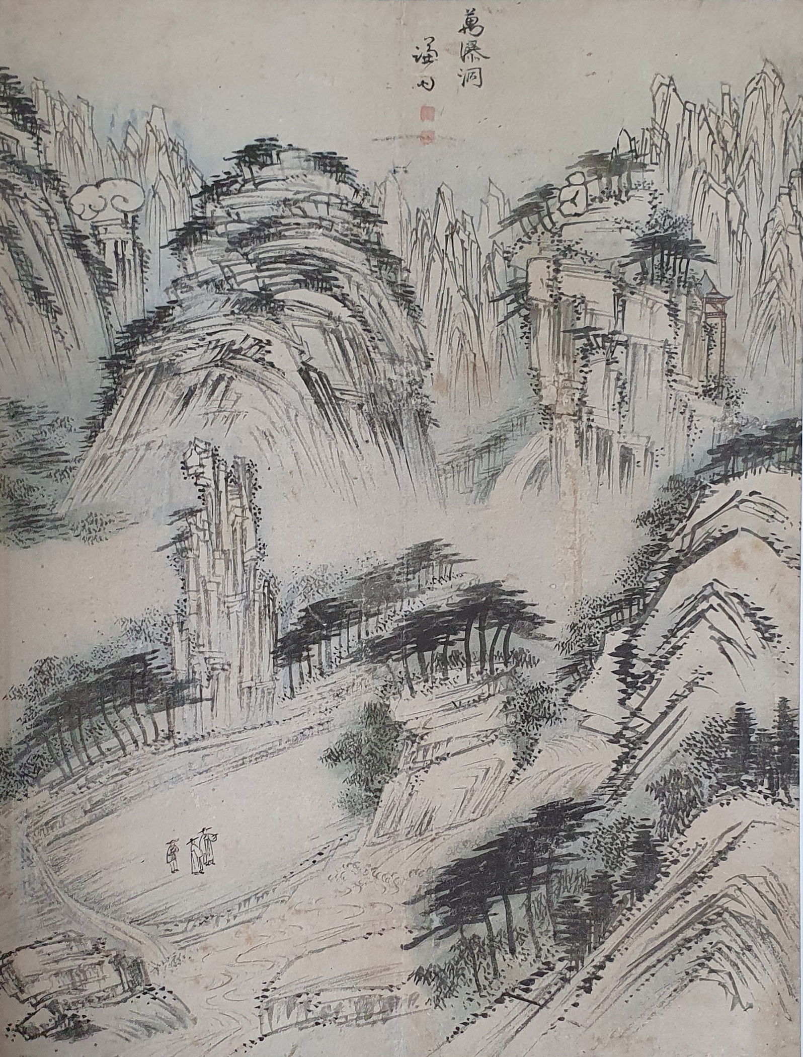 화면 왼쪽을 가득 채운 초삭(峭削)한 암산(岩山)이 지장봉(地藏峯), 중앙에 세로로 솟은 바위가 명경대(明鏡臺)이다. 그 오른쪽에 암문(暗門)이 있는 석축(石築)이 고성(古城)의 잔해인데, 신라 마의태자가 망국의 한을 품고 들어와 쌓았다는 전설이 깃들어 있다. 예리한 필치로 그려진 봉우리들은 골기(骨氣) 늠름한 전형적인 정선의 금강산도이며, 창윤(蒼潤)한 미가수법(米家樹法)과 복잡한 점염법(點業法)으로 살벌한 금기(金氣)를 중화시키고 있다. 대담한 구도와 장쾌한 암봉의 표현, 소나무 숲 사이로 바람 흐르는 듯 성기지만 생동감 있는 수목 표현 등은 정선 노년기 작품의 특징이다. 정선이 76세인 1751년경에 제작된 <장안사)와 함께 그려진 작품이다.